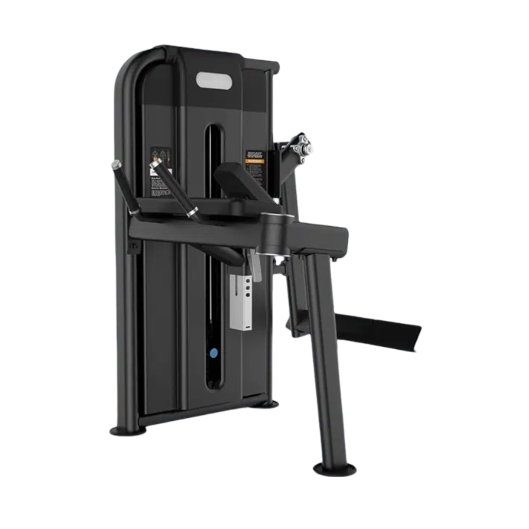 La Máquina Patada de Glúteo Profesional de la línea FALCON es ideal para aislar y trabajar los músculos de las caderas y glúteos con una técnica correcta y máxima comodidad. Su diseño ergonómico permite realizar la extensión de cadera de pie, con soporte estable gracias a sus reposacodos, almohadilla ajustable para el pecho y manerales anatómicos.